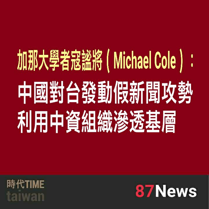 《美國之音》報導指出,在台已居住13年的加拿大籍學者寇謐將指出:中國對台發動假新聞攻勢,其利用中資台團組織及活動進行基層滲透,此行為難以被台灣政府所控管。