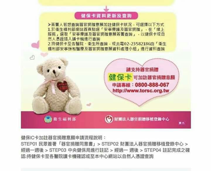 因為當無常來臨,大家真的成為器官捐贈候選人時,我們有器捐卡,才可以給勸募人員,及自己的家屬減除內心不必要的壓力,還有親人日後可能的無盡自責與憾恨-我們的勇敢,成就所有人的勇敢!